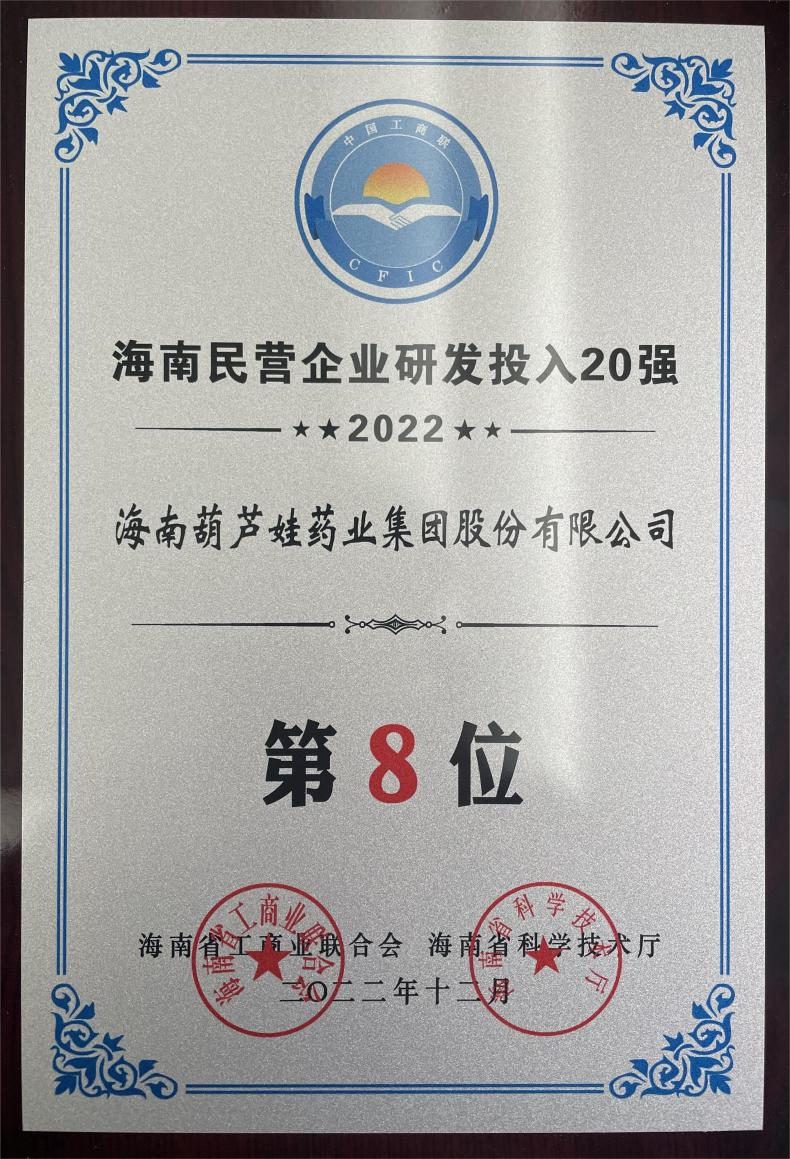 12月23日,2022海南民营企业50强和研发投入20强发布会在海口举行。会上发布了“2022海南民营企业50强”“2022海南民营企业研发投入20强”榜单和分析报告。PA尊龙时凯药业再次荣登两榜,在海南民营企业50强榜单中位列第25位,较去年上升8位,这也是公司连续三年登榜;在海南民营企业研发投入20强中位列第8位,较去年上升7位。